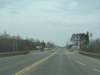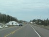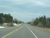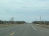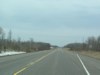 Westbound view at Mile 226. Ahead is a sign for Gowan, one of the many small communities located along the route. A status symbol appears to be whether or not the hamlet's population is posted on the sign. ![]() Photograph taken in April 2013. |