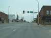 Westbound view at Main Avenue/MN 92, or as the sign says, “MAIN AVE.” Virtually all signage in Minnesota lists cities and streets in mixed case. ![]() Photograph taken in April 2013. |