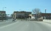 Northbound view on Robert Street. At right is a Happy Joe's Pizza & Ice Cream restaurant, a small, but venerable chain in the Midwest once enjoyed by your photographer. ![]() Photograph taken in April 2013. |