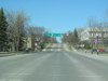 Northbound view on University Avenue approaching the campus of the University of Minnesota, Crookston. Their practice field is named in honor of UMC alumnus Jim LeClair, who went on to star with the USFL's New Jersey Generals. Prior to joining the Generals, LeClair was an All-Pro during his 12 years in another major league. ![]() Photograph taken in April 2013. |