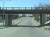 Westbound view on 6th Street approaching a railway underpass. ![]() Photograph taken in April 2013. |