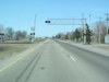 Northbound view on University Avenue approaching a railway crossing. ![]() Photograph taken in April 2013. |