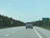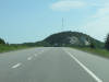 Eastbound view showing a blowing snow advisory sign. Pictograms are common in Québec and most are easy to decipher, but this one is not. ![]() Photograph taken in June 2023. |