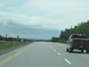 Eastbound view showing the sign giving the distances to Rivière-du-Loup, New Brunswick and Rimouski. ![]() Photograph taken in June 2023. |