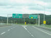 Northbound view showing the sign designating A-85 as Autoroute Claude-Béchard. ![]() Photograph taken in June 2023. |