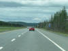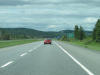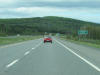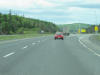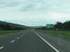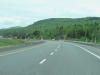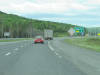 Southbound view past the Traverse Johnny-Griffin exit showing the advisory sign indicating that this is an area with protection against collisions with moose. ![]() Photograph taken in June 2023. |