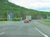 Northbound view showing the sign indicating that the nearest tourist information center is 10 km ahead. ![]() Photograph taken in June 2023. |