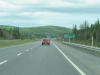 Southbound view entering New Brunswick. Ahead is the overpass for Madawaska Avenue, which serves the nearby Edmundston Airport, as well as a Couche-Tard and an Irving gas station on the Québec side. ![]() Photograph taken in June 2023. |