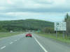 Northbound view showing the sign giving the distances to Dégelis and Rivière-du-Loup. ![]() Photograph taken in June 2023. |